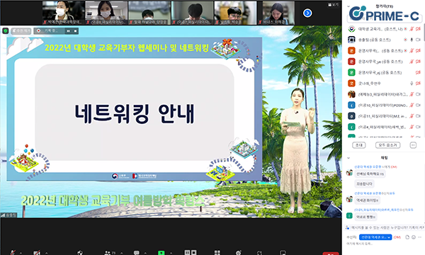 주요내용 대학생 교육기부자로서 사업 이해도 및 필수 역량 강화를 위해 마련된 실시간 쌍방향 온라인 연수(교육연수/웹세미나) 진행