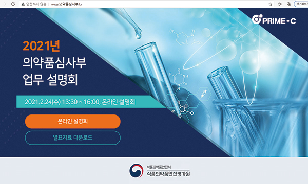 주요내용 식품의약품안전평가원 의약품심사부의 주요 업무추진계획 및 2021년 달라지는 심사제도 안내를 주제로 온라인 업무설명회 진행